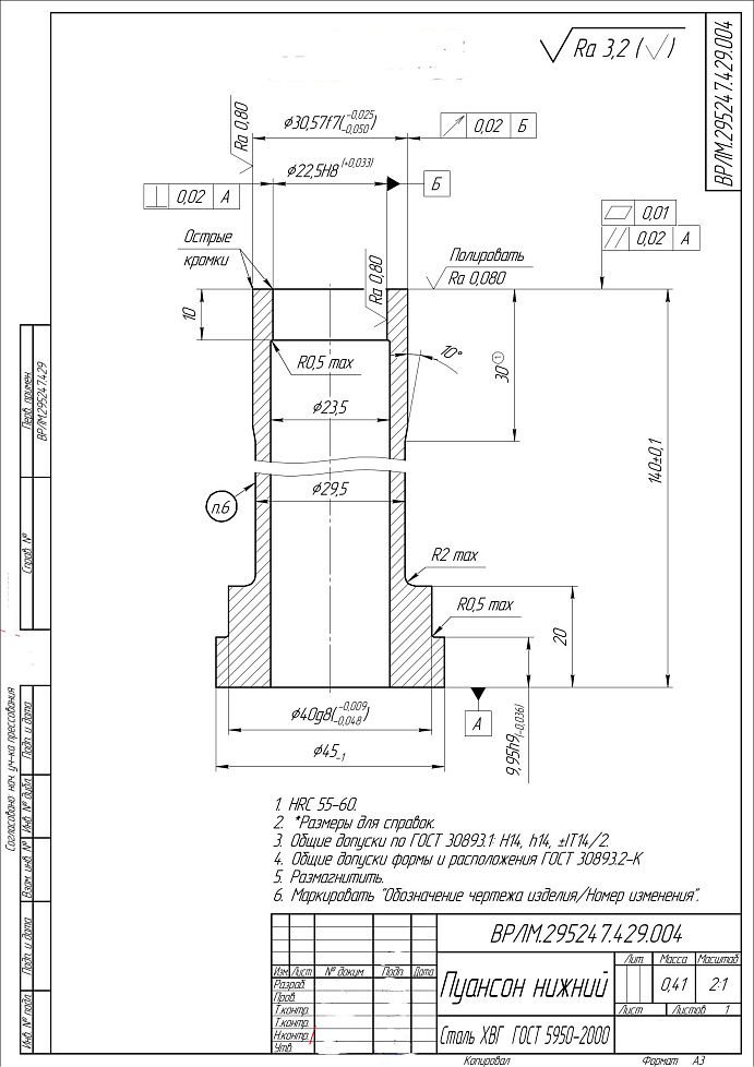 Пуансон нижний ВРЛМ.295247.429.004