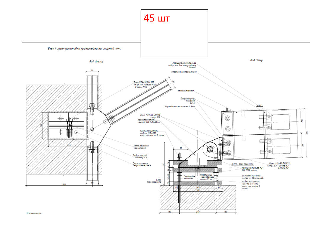 Узел установки кронштейна на опорный пояс